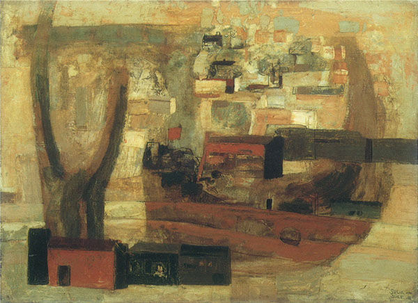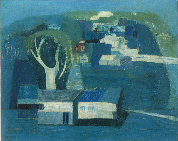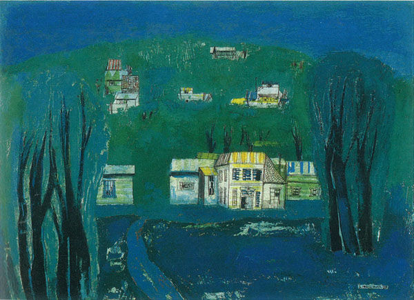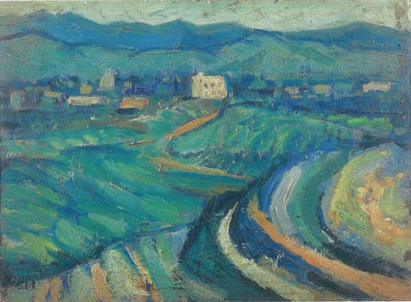 山王では見晴らせるすべてをあるがままに描いていると思えるが、聴覚を奪われた当の画家にとってそれは無音のなかの風景だった。だから画家は丘や道や建物の発する幽かな声に耳をそばだてていたにちがいない。その集中が独自の視軸に重なっているのかもしれない。「郊外」シリーズはそれに続く風景の、明暗の階調が複雑に交叉した作曲とも思えてくる。