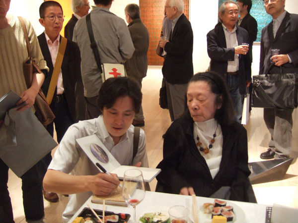 宮脇先生はお体の調子もよく、この夜は最後まで会場にいらしてお客様を送り出してから、もういちどご自分の作品を愛おしそうにご覧になっておられました。◆「宮脇愛子展」を2012年6月25日[月]―7月7日[土]に銀座・ギャラリーせいほうと青山・ときの忘れものの二会場で同時開催しています。