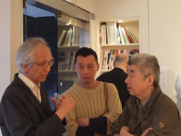 建築界の大御所たちに囲まれる光嶋裕介さん。●銀座のせいほう画廊にて宮脇愛子さんの個展のオープニングに伺う。建築家の槇文彦さんがいらしてご挨拶と自己紹介をしたら「そうですか、私も『日本辺境論』を読みました」と言われて、びっくり。(光嶋さんのツイッターより)