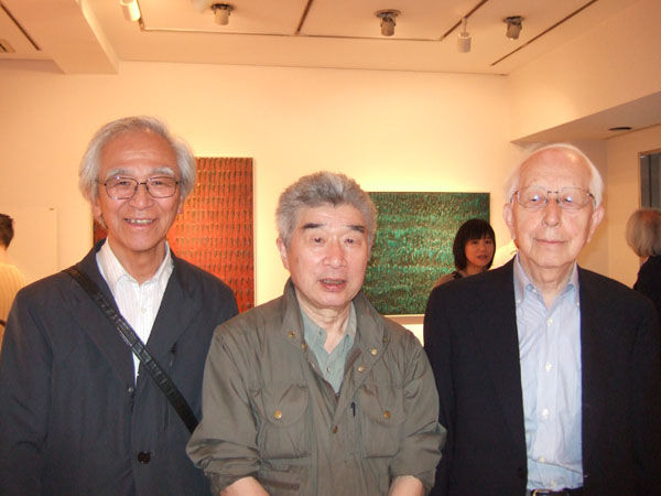 長年親交のある建築家の槇文彦先生と宮脇先生。宮脇先生の後方に高崎正治さん。槇先生設計の青山・スパイラルにも宮脇先生の「UTSUROHI」が設置されています。