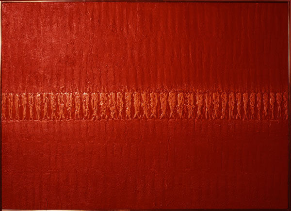 日本女子大の学生の頃、絵を描き始めて、西村伊作さんの文化学院に通うようになります。自由な校風で素晴らしい先生が沢山おられました。女子大では、日本美術史、桃山文化の狩野永徳、長谷川等伯に熱中していて、大覚寺の紅梅の間で障壁画の模写をするために行ったりしていました。その頃、文化学院の先生より、菅野圭介さんのことを教えていただき、作品を見に行くようになったのです。具象と抽象のはざまのような作品に魅了されました。