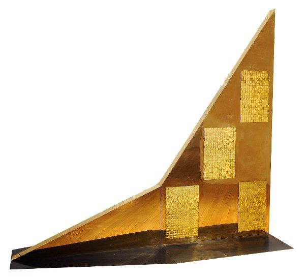 油彩(ミクスドメディア)による平面から真鍮やガラス、石などによる立体作品へと移行していった時期の宮脇先生の頂点を示す作品です。