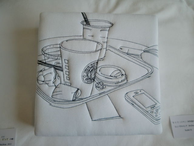 キャンバスに絵の具とブラシではなく糸とミシンでイメージを構成しており、縫い込まれた糸によって生じる凹凸により、不思議な作風になっていました。