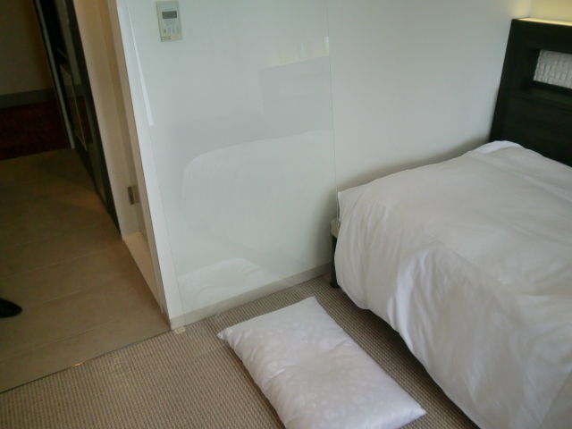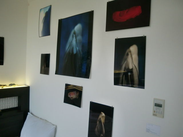 目についたのは写真のオブジェクトインスタレーション。Hong Sun Hoanさんの作品で、壁に立てかけられた透明なボードと、床に置かれた枕、そしてその枕の中央の窪みに注がれた水(!)という、何ともシュールな作品でした。