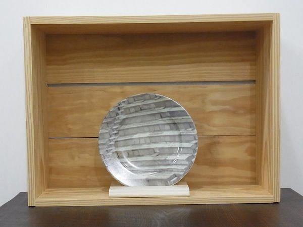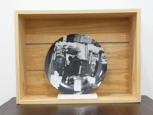 今回出展されているアートプレート「GUGGENHEIM MUSEUM LIMITED EDITION PLATE」は、その現実世界の取り込みが極端に単純化して制作された作品です。1997年にNYのグッゲンハイム美術館からエディションされ、現在は入手困難なマルチプルとして海外のアートマーケットでは流通しています。