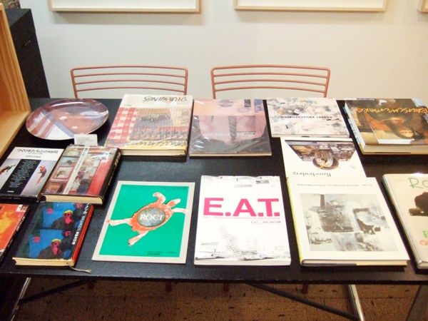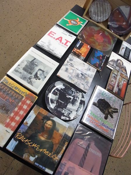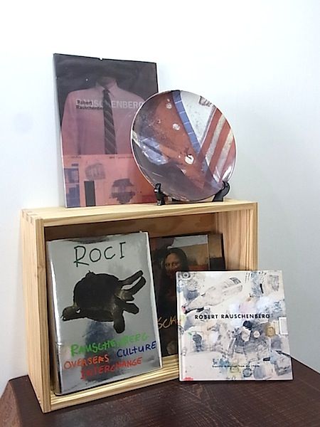 ラウシェンバーグのレアな展覧会カタログや書籍の他、限定生産の絵皿やレコードを展示販売いたします。