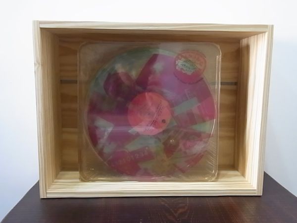 ラウシェンバーグの作品もしかり、1983年にトーキングヘッズの名盤「Speaking in Tongues」のスペシャルエディションとして発売されたこの作品もインパクト大です。出展作品はシールド状態で判りづらいのですが、3枚の透明の円形プレートに青・赤・黄色イメージが出力され、ラウシェンバーグの同様のコンセプトのオリジナル作品を彷彿とさせます。90年代にギャラリーで展示されマルチプル作品として販売されていたのも十分納得できる完成度です。