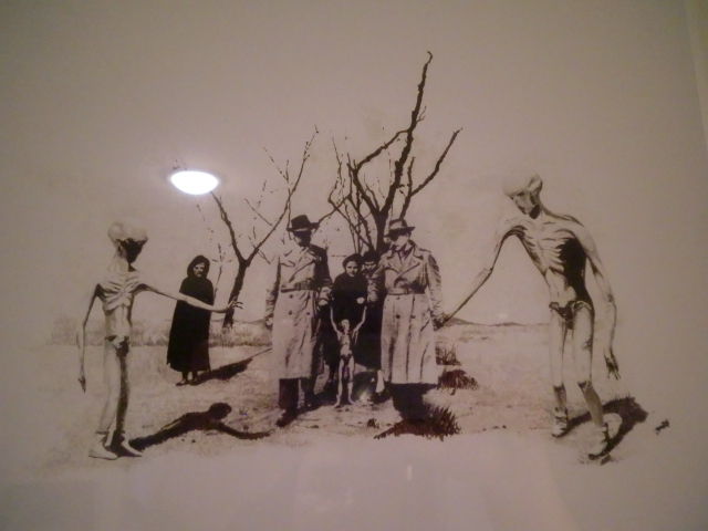 自分の写真だと分かりにくいですが、作品の一部に実際の報道などで使われた写真があり、その世間に報道されたイメージの「外側」を作家が自分の想像で補完するという作品になっています。