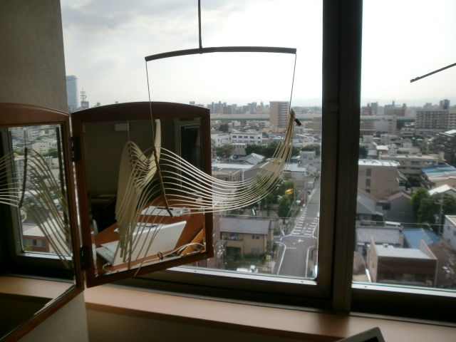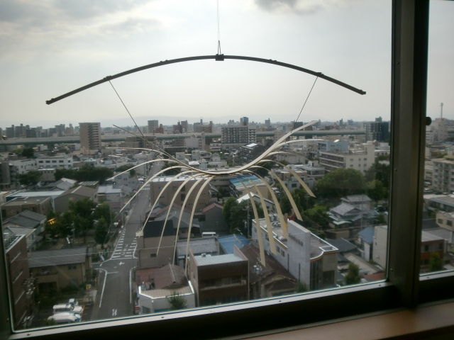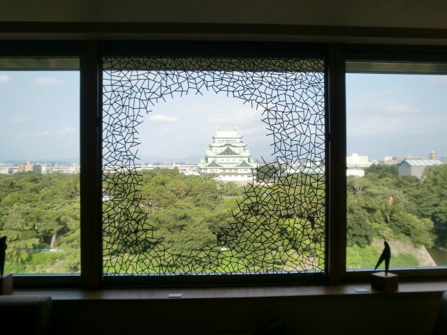 今回のアートフェアに合わせて制作された作品で、部屋が決まった時に作家が訪れ、窓から見える名古屋城を囲うように組まれたそうです。