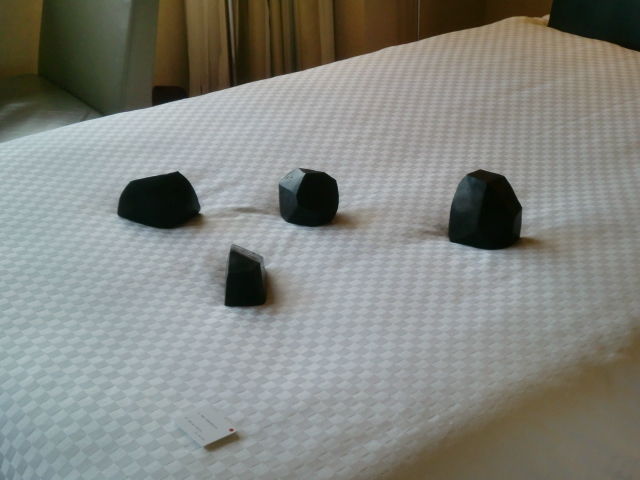 15の立体を空間に散し、その空間そのものを作品にするという豪快なコンセプトの一品です。
