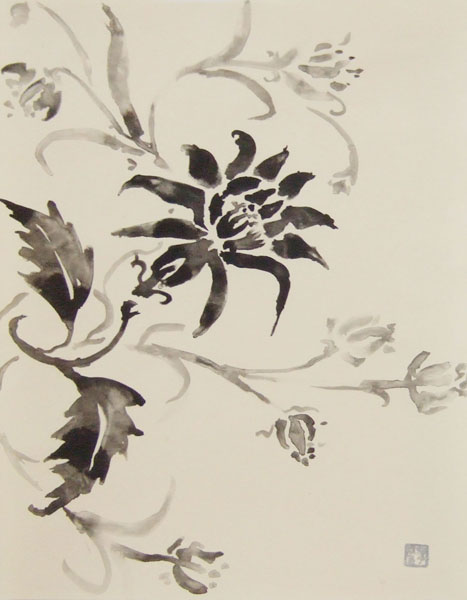 今回の展示作品も、今まで同様に全て紙に墨で描いた作品となります。単純な技法と材料ですが、従来使用していた道具に加えて、墨と筆はシンガポールで手に入れた物も使用しています。また今回は初めて、和紙を使用した作品の展示も行います。