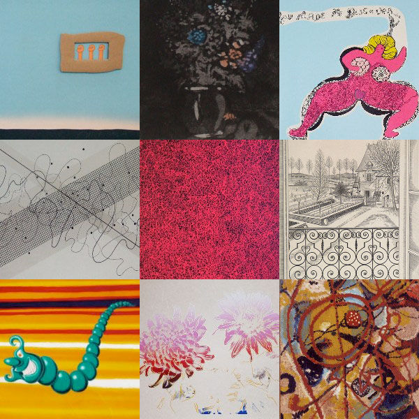 出品:阿部展也、アンディ・ウォーホル、今井アレクサンドル、内間安王星、瑛九、オノサト・トシノブ、小野隆生、恩地孝四郎、金子國義、草間彌生、ケニー・シャーフ、駒井哲郎、斎藤義重、サンドロ・キア、篠原有司男、ジャック・ヴィヨン、ジュリアン・レスブリッジ、ジョン・ケージ、テリー・ウィンタース、ナム・ジュン・パイク、ニキ・ド・サンファル、長谷川潔、ハンス・ベルメール、マックス・エルンスト、マン・レイ、元永定正、山口長男、若林奮、他
