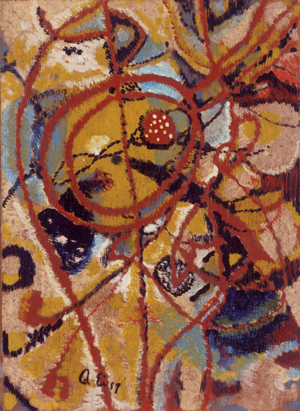 この作品「森の空」が制作された1957年頃には、茶色を基調にし、線がぐるぐる回るような作品を集中して描いています。国立国際美術館(大阪)所蔵の「動物たち」もそれらの中の一点です。
