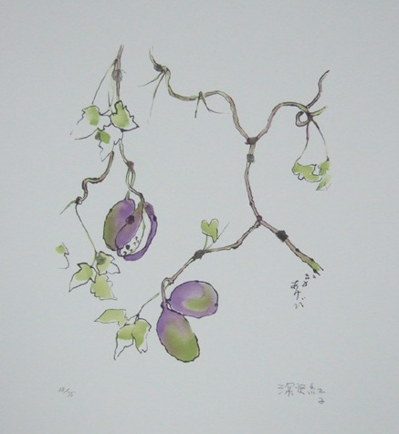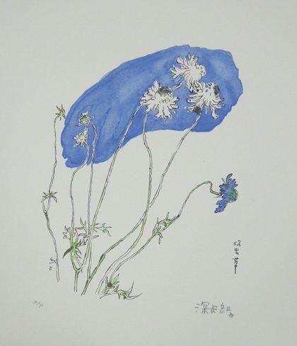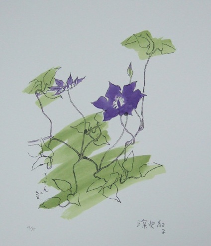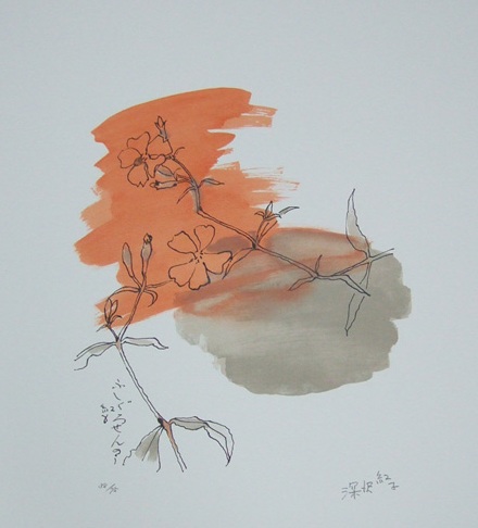 少年時代、亭主は堀辰雄を愛読しており、その交友関係でしばしば名前の出てくるのが深沢紅子先生でした。その画家にまさか後年自分がお会いできるなんて思いもかけませんでしたが(昔の画家と勝手に思い込んでいたので)、縁あって先生のご自宅に伺い、リトグラフ集「野の花」連作を制作してもらうことができたのは1983年でした。このとき、紅子先生は80歳。
