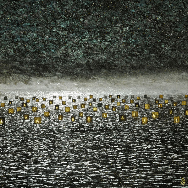 開場からしばらくして、野口さんも来場。新作の"Landscape #24"についてお聞きしながら、今回も売れるといいなぁなどと考えていたら、画廊からの連絡が。内容は画廊の方に"Landscape #24"の予約が入ったので、赤丸シールを付けるようにとの指示でした。…昨日の午後に作品を預かってから、まだ24時間経ってないんですけど!?