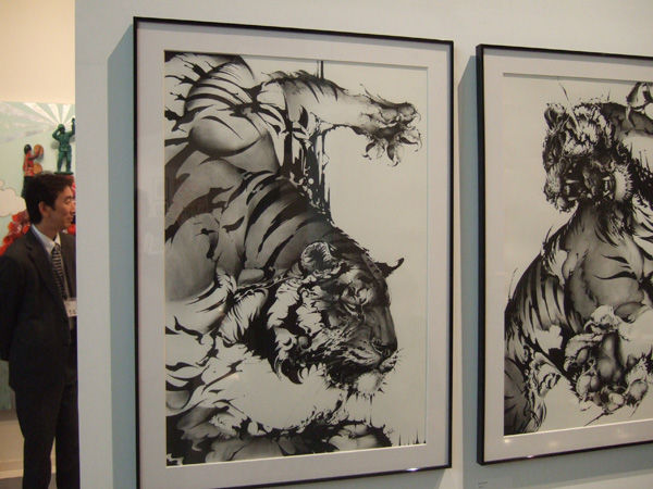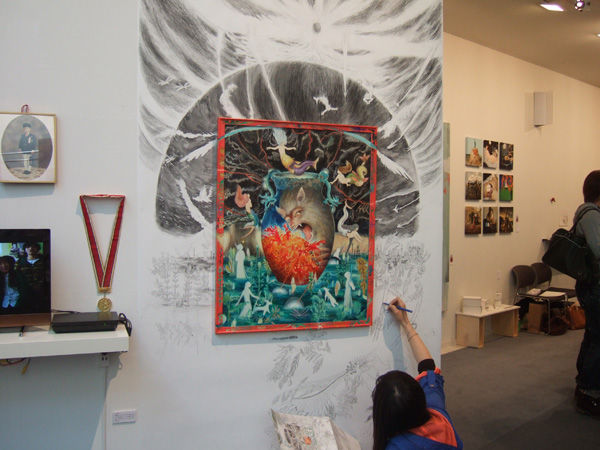 初日の午後。画廊での作業があったので一旦会場を離れ、夕方に戻ってきたのですが、週末であることを差し引いても多くの来場者でごった返す会場に驚きました。もっとまばらに人が訪れるものとばかり思っていたのですが、なるほど、これなら期間中に1500人以上はいきそうだと納得。その後のオープニング・パーティも盛況でした。