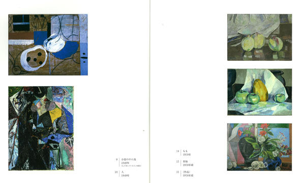 <具象から始まり、半抽象、1940年には丸や四角による純粋抽象にまで進んでいるが、同時に完全な具象の風景画も制作したりして、画風は一定していない。>