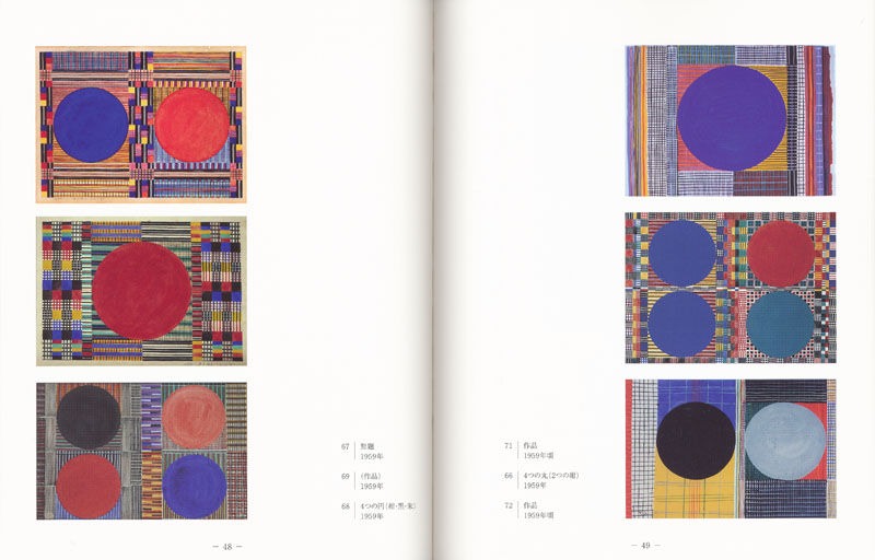 大川美術館カタログより1961~64年の作品<1960年に丸の分割が始まって、(中略)最初は意識しないうちに丸がモチーフからルールに転化した><この丸の分割時代はそれ以降1986年にオノサトが死去するまで続く>