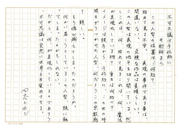 四谷シモンさんから「井桁裕子展」に寄せてメッセージをいただきました。