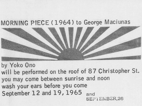 「オノ・ヨーコ モーニング・ピース ニューヨーク・クリストファー通り87番地の屋上にて、1965年」
