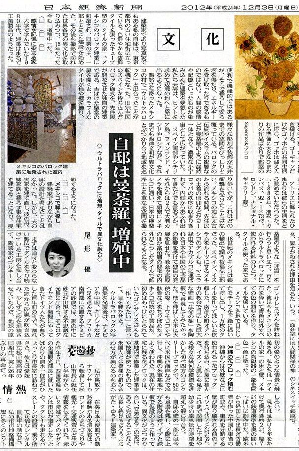 先日の日本経済新聞の文化欄に、延々と自邸を作り続けている尾形一郎・尾形優さんのことが大きく紹介されました。