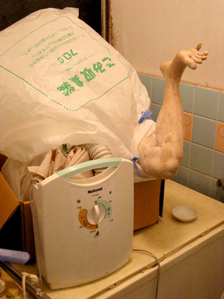 (写真は、昨年の制作中の記録。作りかけの作品を乾かしている、ふとん以外のものしか乾燥したことがないふとん乾燥機。)