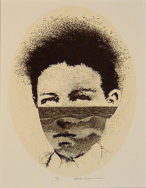 紙面も限られているので、日本人作家に移ろう。日本人作家についてはすでに紹介しているので、なるべく簡略にすすめたい。最初に野田哲也(のだてつや1940~):写真、シルク、木版の組み合わせと日記シリーズという物語性に彼の才能が加わり、魅力的な野田ワールドをつくり出している。奥様も含め、何度かお会いしているがその気さくで優しい人間性にも惹かれる。日記シリーズに本人、奥様、娘さんも登場しているので、なぜか家族ぐるみのお付き合いが続いている感じがするから不思議である。コレクションは50点近くになった。お気に入りは日記:1970年4月27日でニューヨークで池田満寿夫、リラン、川島猛が登場する作品だ。空の色は池田のブルーで当時の熱気が伝わってくる。次は舟越桂(ふなこしかつら1951~)。今や人気の彫刻家・アーティストだ。彫刻のみならず、版画の様々な技法にチャレンジしてくれるのはうれしい。もう少し好みの作品を集めたいところだが、値段が高くて苦しい。一番最近のコレクション作品は「戦争を視るスフィンクス」(2005 銅版画)だ。殺し合いをする愚かな人間達を悲しみの心で見つめるスフィンクスが描かれている。赤い色は戦火を表現しているのだろうか。好きな作品だ。次は小野隆生(おのたかお1950~)。アートフル主催の企画展は4回を数えた。肖像が好きで、私としては珍しく版画でなく、テンペラ作品もコレクションさせてもらった。強く・主張する女性から少しずつマイルドになっているのが気にはなるが、変化も含めてコレクションするのは楽しい。彼の肖像にはモデルがいないとのことだが、どこからイメージが沸いてくるのか、いつも不思議に感じている。次は柄澤斉(からさわひとし1950~)。一番長いつきあいの作家だ。版画作品のみならず、挿画本にこだわったり、自分で「SHIP」という版画入り雑誌を発刊したりで、作品のテーマも含め、共感できることの多い作家だ。そんなことで「肖像シリーズ」をはじめ、コレクション数が一番多い。やっぱり「肖像シリーズ」が一番お気に入りである。アートフルの展覧会で購入した「岸田劉生」(2007 木口木版・手彩色)は秀作だ。版画のみならず、表現領域を広げており、今後の活躍が楽しみだ。出来る限り応援を続けたいと思っている。しんがりは北川健次(きたがわけんじ1952~)。彼は福井出身だが、お付き合いの面では一番最近のアーティストだ。少しばかり古風でノスタルジックなイメージの中に彼の鋭い感性・美意識が走る。ちょっと重い感じがしないでもないが、軽いものが蔓延しているなかでは光っている。とにかく彼の感性とかこだわり、さらには自信を持って自分自身をアピールする姿勢には敬服している。また、アートにとって厳しい世の中にもかかわらず、版画集、オブジェ作品、コラージュ、ミクストメディア作品を積極的に発表しつづける姿勢にも大いに評価したい。今のところ、私のコレクションは版画集が中心だが、彼の発表する写真作品にも興味を抱き、コレクションに加えている。彼のこれからの活躍に期待して、微力ながら応援したいと思っている。