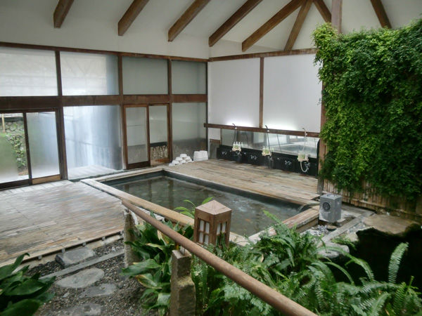 温室みたいな広い浴場。温泉は少しぬるく、冬より春がいいかも。