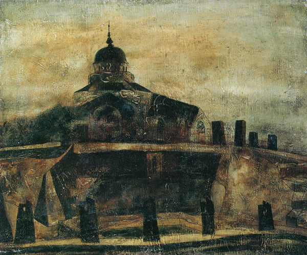 一方、東京国立近代美術館での開館60周年記念特別展(2012年10月16日-13年1月14日)には巡回展のラインナップから外れて一足早く家に戻ってきたみたいな感じで、竣介の特徴をよく伝える≪並木道≫(1943頃)と、遺作となった≪建物≫(1948)が、「ベストセレクション 日本近代美術の100年」のなかにどう位置づけられているかが迫ってくるように展示されている。画家の展開を内側から辿る巡回展で見ていた同じ作品がまるで違って感じられるのだ。その第II部の「実験場1950s」では鶴岡政男による油彩≪松本竣介の死(死の静物)≫(1948)に言葉を失った。このような絵が描かれていたとは思いもよらなかった。