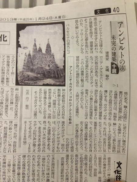 先日ご案内したように建築家・光嶋裕介さんが1月24日から日本経済新聞の朝刊文化欄に「アンビルトの夢~未完の建築十選~」という連載を始めました。