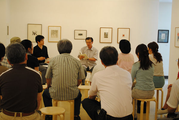 福井市の北の庄通りにE&Cギャラリーがある。2009年に福井大学の美術科の先生・学生が運営するNPO法人の画廊としてオープンした。EはEdge(周縁)、CはCenter(中心)を意味しており、文化の受信地であり、発信地でありたいという気持ちが込められている。最初の展覧会が福井県にアトリエを持つ宇佐美圭司展でファインアートの発信地を目指す意気込みを感じ取っていただけると思う。E&Cギャラリーのホームページをのぞいていただくと分かるが、4年間にわたり、積極的に企画展を開催している。また、ポスターや案内状・ちらしのデザインも学生達が担当し、作品展示についても先生の指導のもと、すべてやってくれるので出展する方としては本当にありがたい。このギャラリーで、先生方の依頼もあり、3度ばかり私のコレクション展を開催させていただいた。コレクションを公にするのは初めての経験で、最初は戸惑いを感じたものの、結果的にはすばらしい経験となった。「駒井哲郎版画展」(2009)、「駒井哲郎と彼が敬愛したアーティスト達」(2011)、「人物博覧会」(2012)がそれらであり、A氏コレクションよりという形で展示させてもらった。「駒井哲郎版画展」では駒井作品を30点ほど展示し、ときの忘れものの綿貫氏にギャラリートークをお願いした。「駒井哲郎と彼が敬愛したアーティスト達」展では前回出品のなかった駒井作品に加え、長谷川潔恩地孝四郎ルドン、ブレスダン、メリヨンの作品を展示した。「人物博覧会」では私のコレクションから人物表現の作品を集め展示した。ルドンの「光の横顔」ほか、駒井哲郎、舟越桂池田満寿夫、藤森静雄、谷中安規等の作品が並んだ。この展覧会では各人好きな作品を3点投票してもらったが、ベスト3にはルドン、藤森、モーリッツ作品が選ばれた。投票結果を見て、好みにはバラツキがあることを改めて実感した。これらの展覧会ではE&Cギャラリーの湊先生と一緒にギャラリートークもさせてもらった。コレクションの苦労話や作家・作品にまつわる物語など、みなさん熱心に聞いてくれたのは楽しい思い出となった。