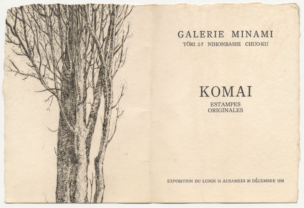 駒井先生は1956年の開廊記念展、1958年と1960年の計3回の個展を南画廊で開催し、その都度、オリジナル銅版画による案内状を制作しています。