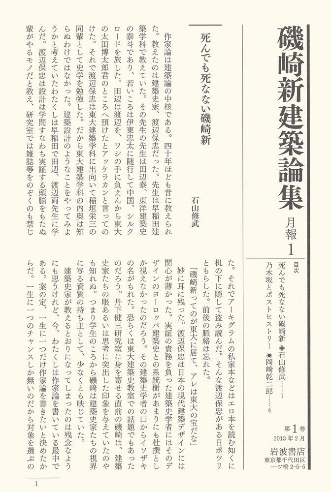 第一巻月報の執筆は、石山修武先生と岡崎乾二郎先生です。