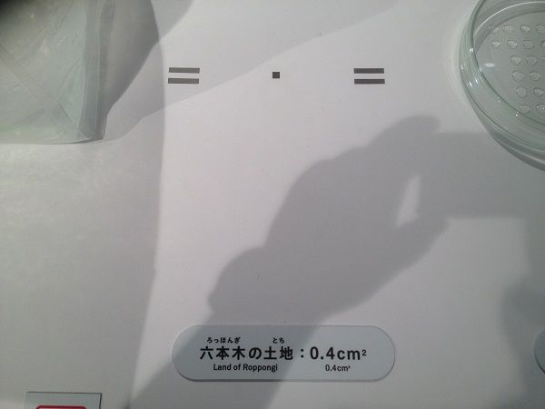 2012年12月1日時のデータを基にした、様々な100円分のもの。鉛筆3本半、水道水711ℓ、トイレットペーパー120m以上…中でも思わず笑ってしまったのが右の写真に写っている「六本木の土地」。100円=0.4平方センチメートル、猫の額ほどでも幾らになるのやら。