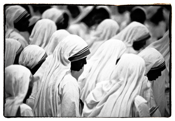 こうして朝と夕の2回のミサの写真を撮ることができたのだが、撮影が終わって機材をしまっていると、一人のアメリカ人が近づいてきて「2年もここでボランティアをしているけれど、ミサの写真を撮っているのを見たのは初めてだ、凄いことだよ」と言われたそうだ。確かに、よく目にするマザー・テレサの写真のなかに、貧しい人々のために神に一心に祈る姿などはないのではないだろうか。すべてを見抜くような鋭い眼光の写真もある。