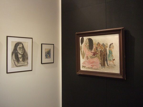 市井の人々を温かなまなざしで描いた作品が日米で高い評価を得ている野田英夫の油彩(右)と素描作品。