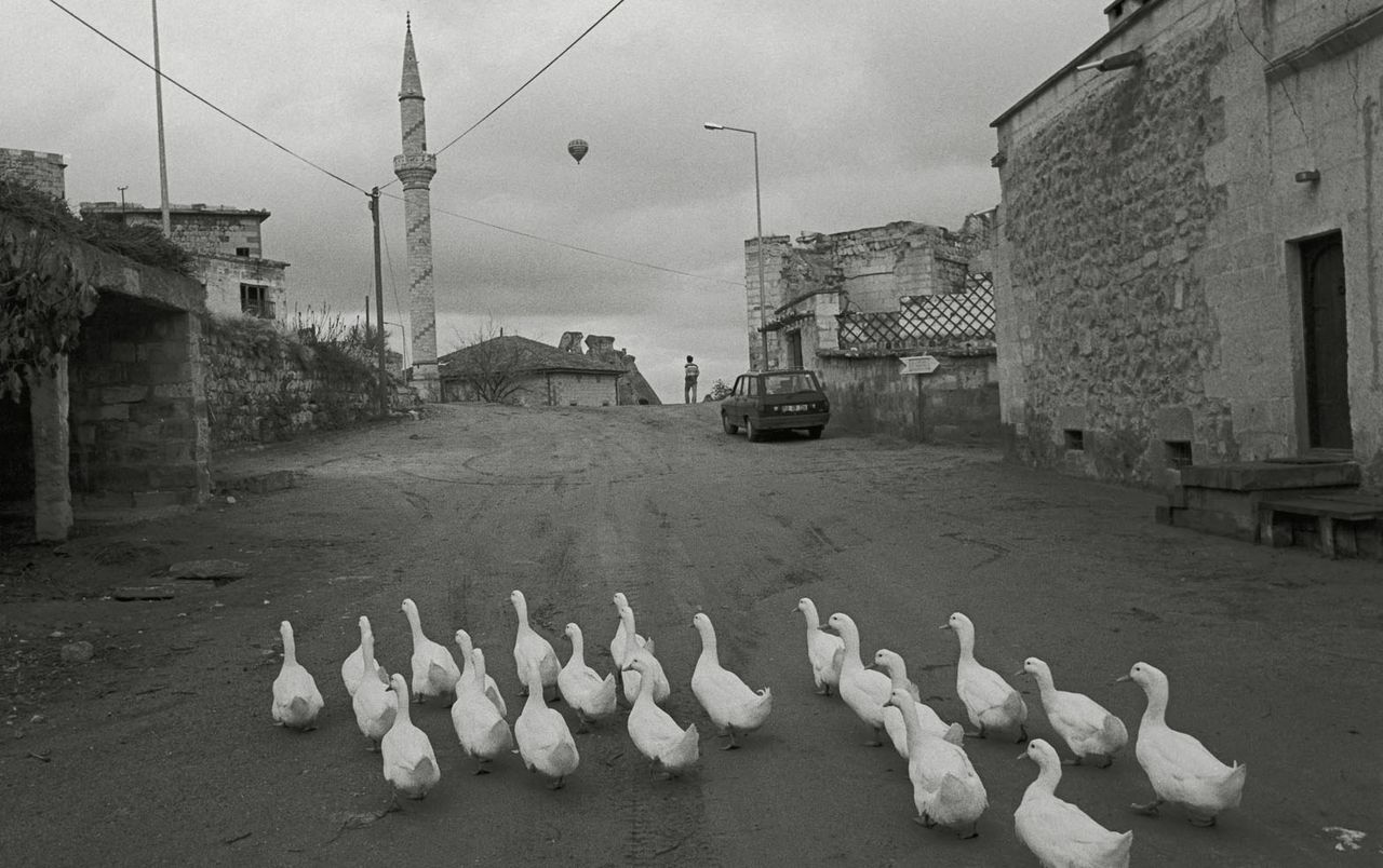 アヒルも、車も、歩いている男も、こちらにお尻をむけている、ということに。