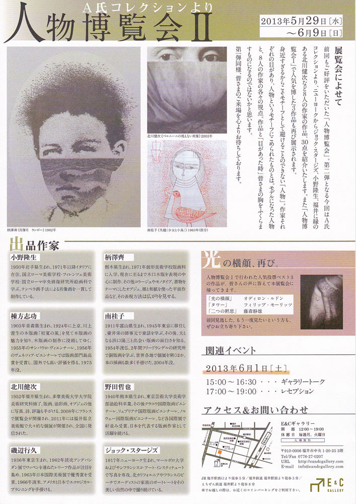昨年の6月の人物博覧会Ⅰにつづき、私のコレクションから人物・肖像を集めた「人物博覧会Ⅱ」を5/29-6/9の日程で福井市のE&Cギャラリーで開催します。