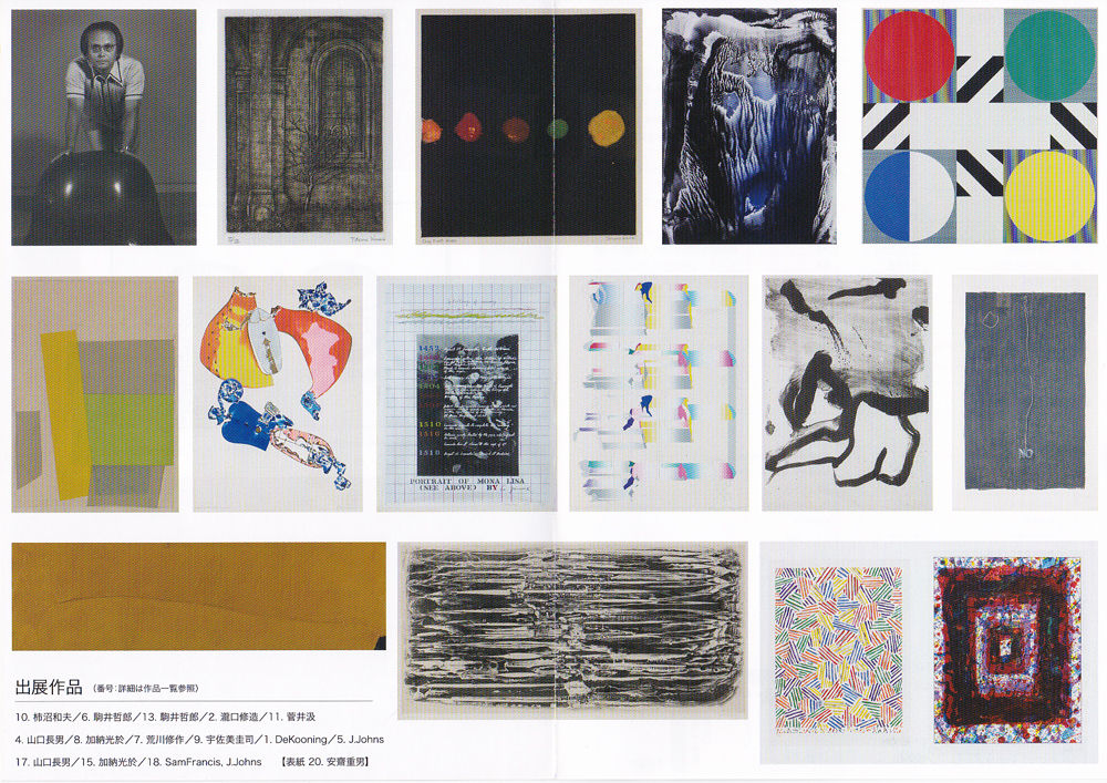 出品作家:駒井哲郎、ジャスパージョーンズ、デクーニング、山口長男、リ・ウーファン、荒川修作、瀧口修造、加納光於、宇佐美圭司、菅井汲、サムフランシス、柿沼和夫、安齊重男