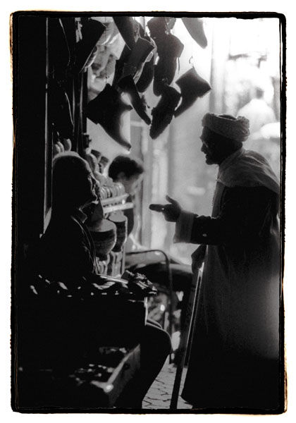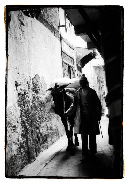 「ジブラルタル海峡を越えてみたい」と、パリから飛行機でマラケシュに降りたったモロッコでは、レンタカーを借り、まずは南に下りて砂漠に足を踏み入れたあと、北上して古都フェズから首都ラバト、それから海岸沿いにカサブランカとまわってマラケシュに戻った。その旅行中、おもにカラーフィルムを装填したカメラで撮影していた百瀬が、モノクロフィルムを装填したカメラに替えたのは一カ所のみ。それがフェズの旧市街で、砂漠でも、道中で目にした珍しい街道沿いの市場でも、ラバトはむろん、映画で有名なカサブランカでもなかった。「フェズの光景にピンとくるものがあった。それまでいろんな旅行をして異文化を見せてもらっていたんだけれど、その少し前からかな、世界じゅうが画一化されていくなかで、何100年前からの生活が残っていた。それもいつなくなるかわからないと思って、記録するつもりで写真を撮った」