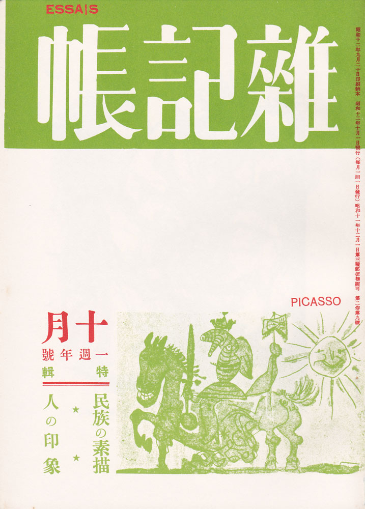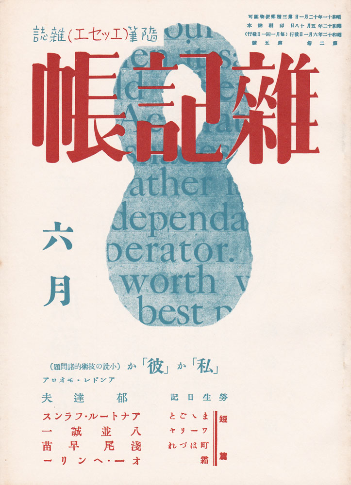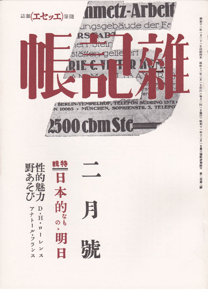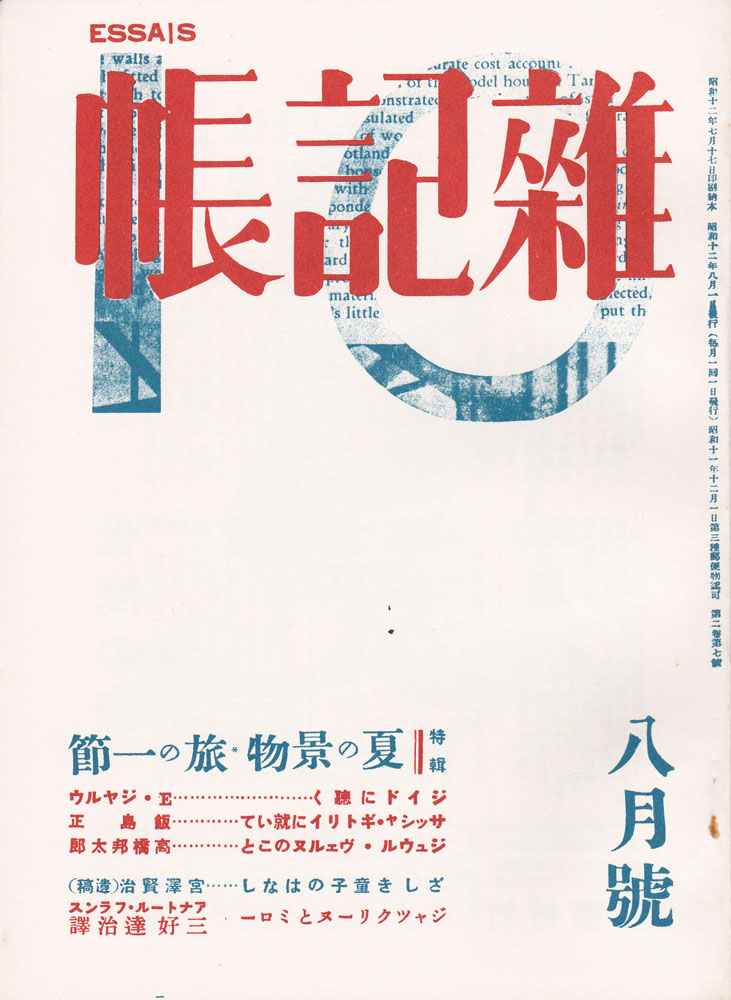 第5号から特輯が組まれるようになるが、それを雑誌の焦点とするというよりは安定した誌面のなかに偏心した方向をつくり出し、流れを呼ぼうと考えた。『雜記帳』の編集方針をそのように想像したくなる。その特輯タイトルを見るだけでも目のつけどころが面白いし、号を追ってのチェンジアップが効いている。