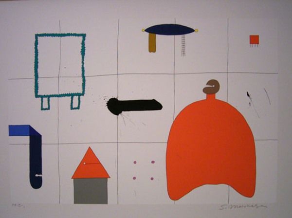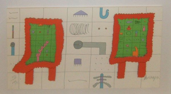 「ふたつのあかいぎざぎざ」シルクスクリーン、コラージュ