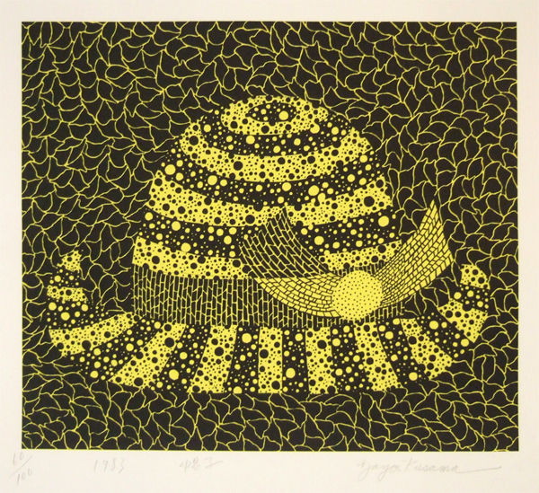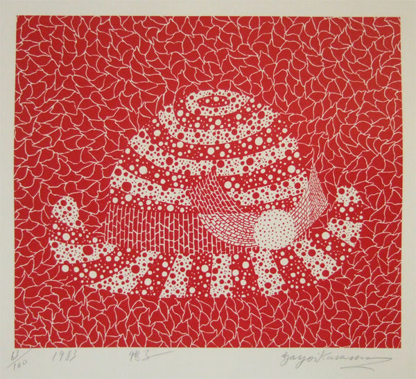 今の市場は猫も杓子も草間さんですが、ご紹介する初期版画「帽子」連作は今から30年前の制作で、当時はまったく売れなかった。しかし草間さんはめげもせず、ぶれもしなかった。