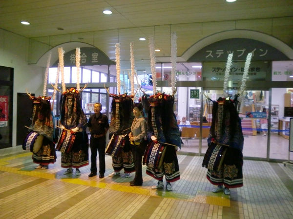 新幹線「新花巻」駅では鹿踊のお出迎え。
