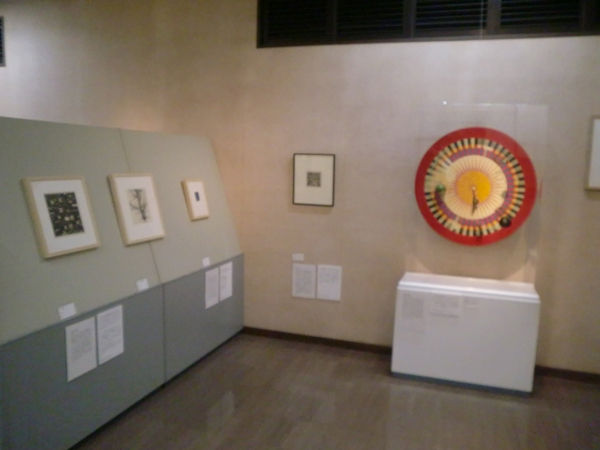 左は駒井哲郎、右の赤い円の作品は菊畑茂久馬「ルーレット(1962年)」