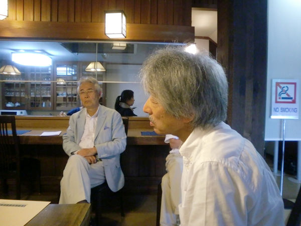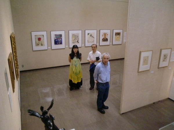 旧知の盛岡在住の画家・戸村茂樹さん(右)と、これも亭主とは40年来のつきあいとなる館長の中村光紀さん(左)。