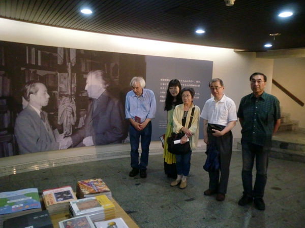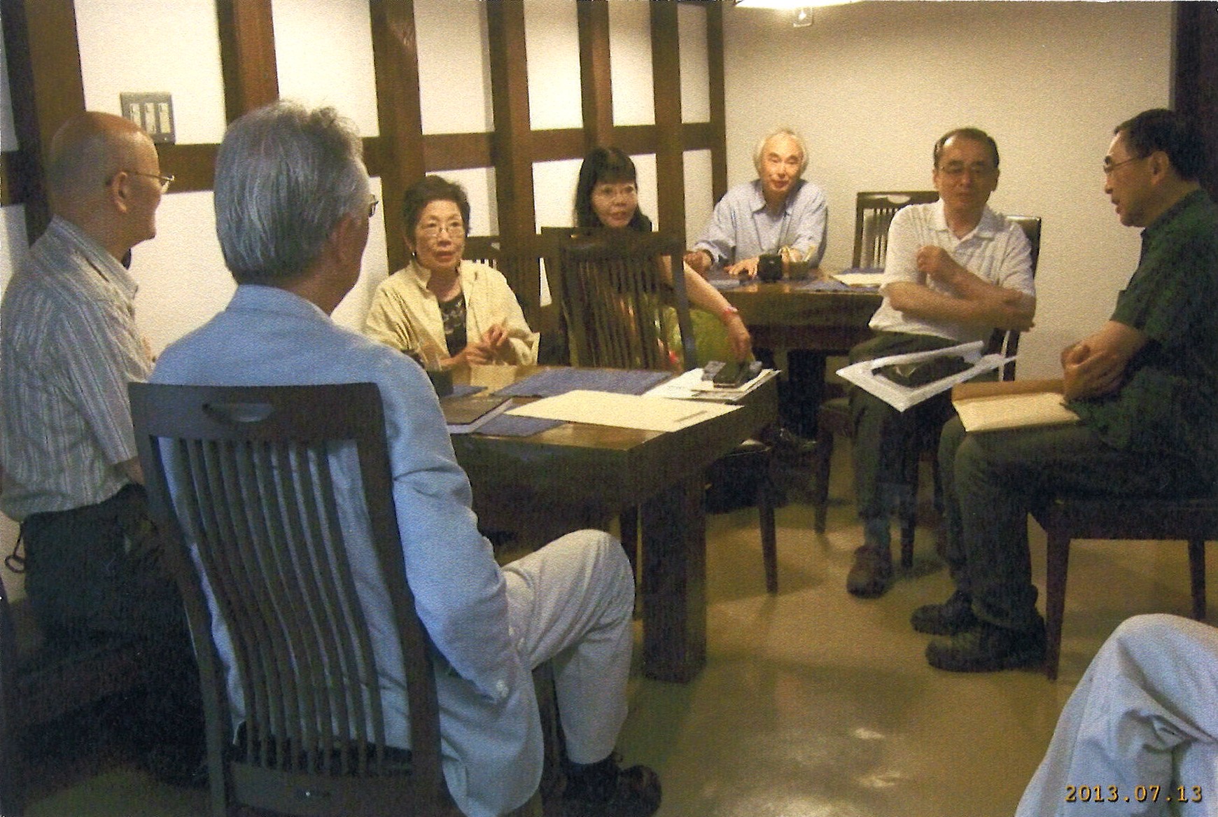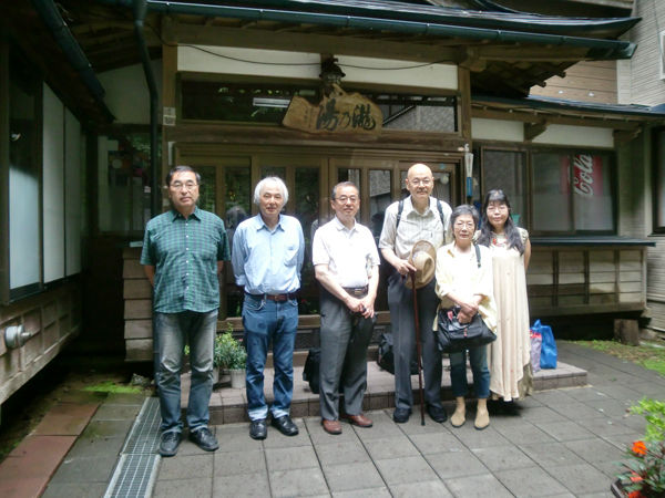 左から、綿貫不二夫、館長の中村光則さん、綿貫令子、石田俊子さん、石田了一さん、栗原敦さん(実践女子大学教授、宮沢賢治の研究家)、土渕信彦さん(瀧口修造の研究者) 2013年7月13日