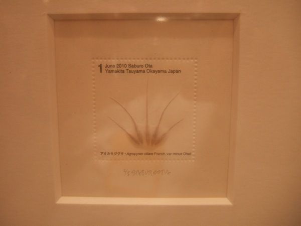 記念切手のように見えますが、実は本物の種を薄紙に挟み込み、切手風のタイポグラフィで種を見つけた日時と場所を記録したもの。シンプルな作品ですが、ズラリと並ぶ様は中々壮観です。
