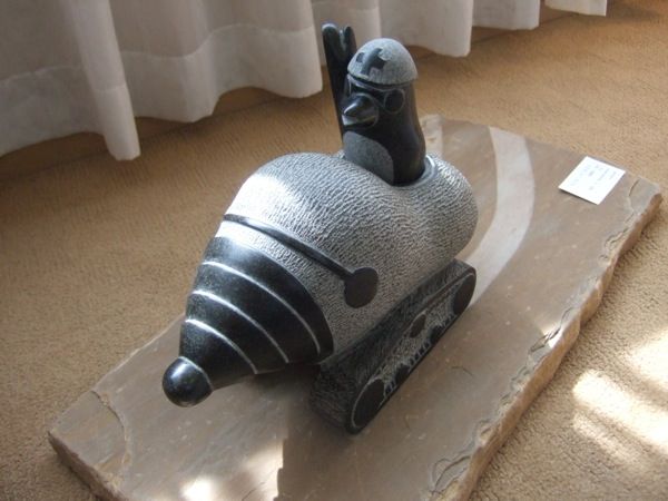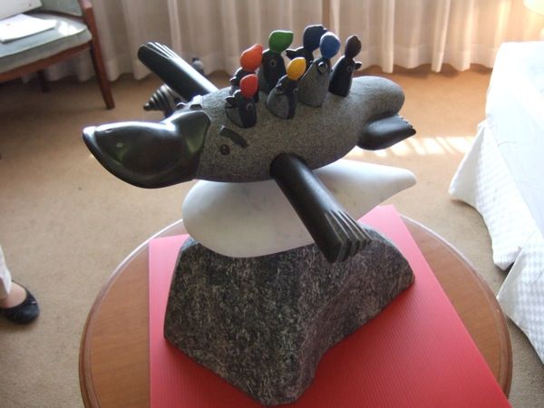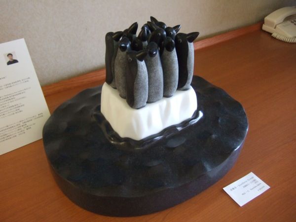 こちらは打って変わってただひたすらにラブリーな作品。氷塊の上にたむろするペンギンや、飛翔するカモノハシの「キリッ」と表情など、見ていて非常に和みます。しかし使っている材料は黒御影石に白大理石と本格派です。