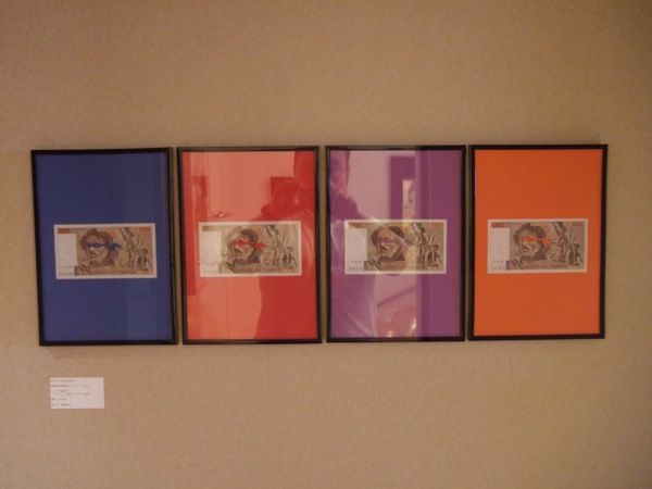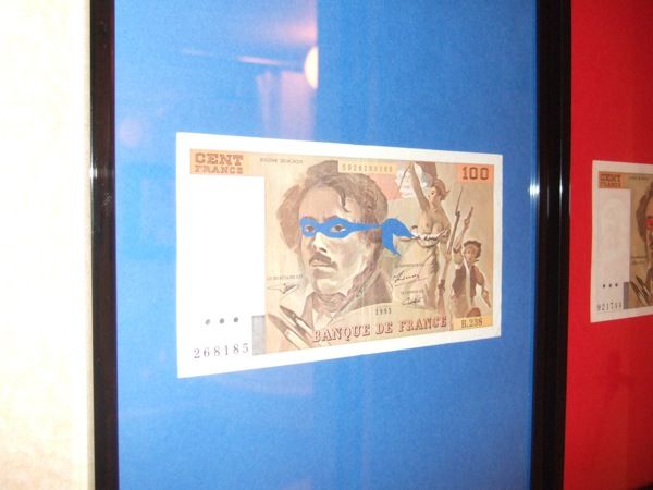 昨年も取り扱ってらしたシリーズ<救世主>の新作。紙幣の人物画の顔部分を切り抜いてアメコミヒーローのマスクをかぶらせる、という作品ですが、今回のモチーフは四人組ということで四作品で一セット。マットの色を見ただけでモチーフが分かった辺り、誇らしいやら情けないやら。